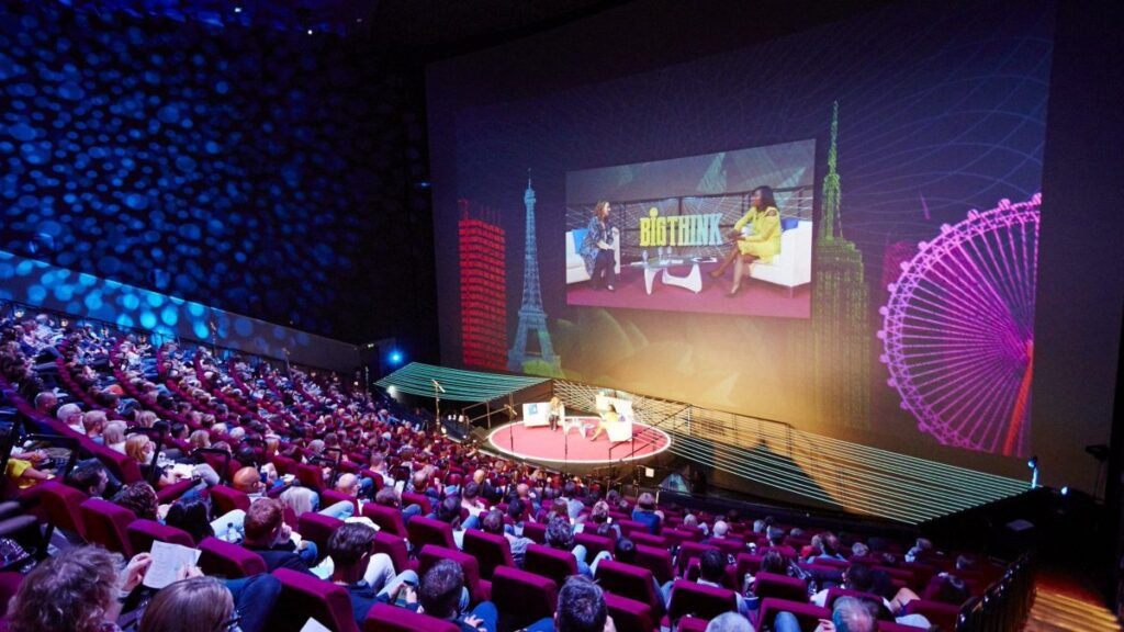 Translating the event assets into artwork for the big screen and formatting this gigantic presentation canvas required careful planning, so that the right tone and atmosphere was created while the audience didn’t lose sight of the presentation platform and the live event environment.