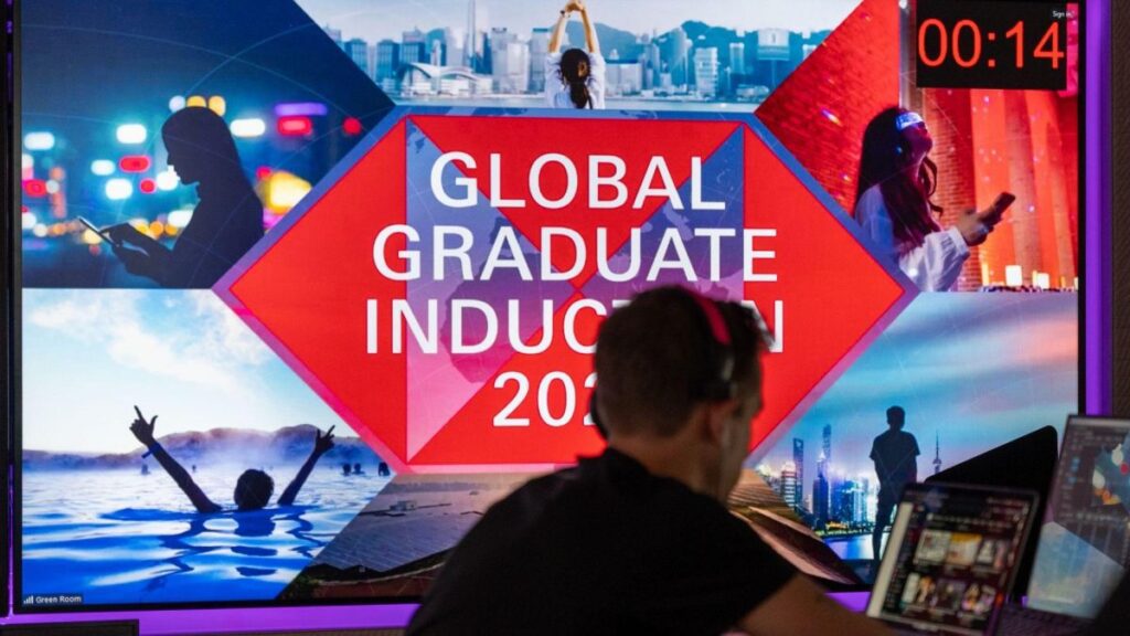 在确认市售虚拟活动解决方案无法满足所有项目需求后,我们决定开发一个完全定制的网络平台,确保符合汇丰IT系统参数。该解决方案使参会者能够:在小群组互动交流、与同行协作、在面向超1,000名观众的全球直播环节中发言,并参与趣味挑战。这些多元化活动融合了演播室直播、预录内容和居家演讲等元素。