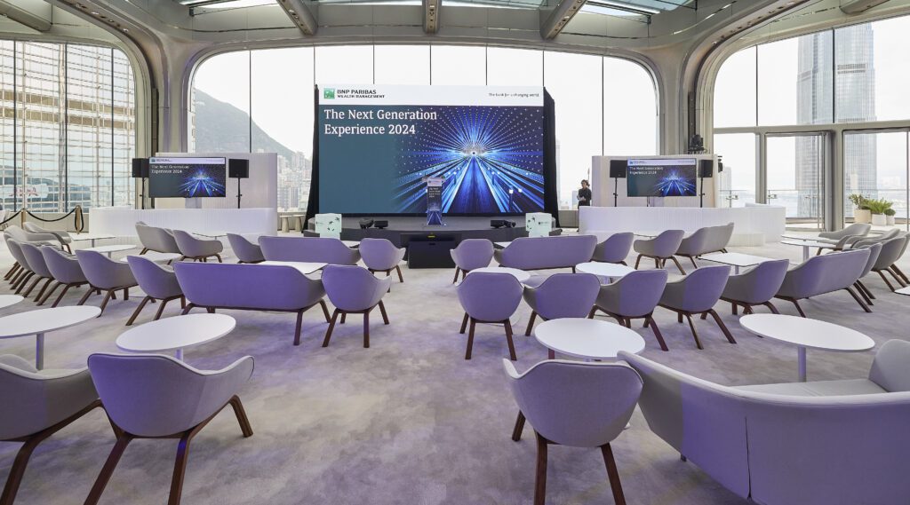 巴黎銀行財富管理地區喺一間銀行入面,為變化中嘅世界而設,喺呢個以香港天際線為背景嘅旗艦下一代大會上,探討觀眾會點樣導航未來。