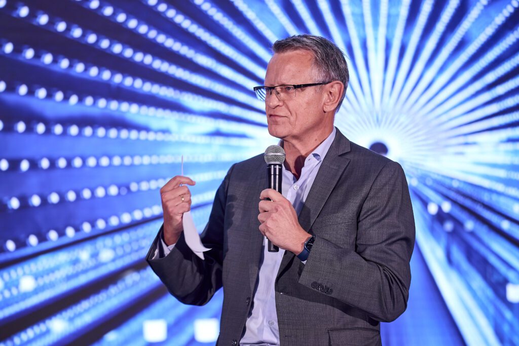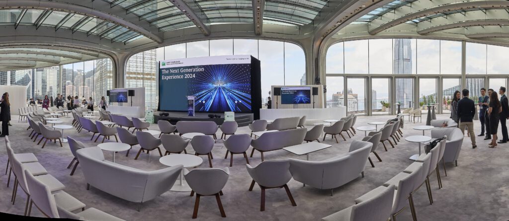 本次會議首度選址「The Henderson」39樓活動空間舉辦,以香港璀璨天際線為背景,完美契合「擁抱變革」的主題,博尚團隊精心打造動態內容,巧妙運用巨型LED屏幕營造沉浸體驗,更將入口改造成未來感十足的時光隧道,與維港景致相得益彰。